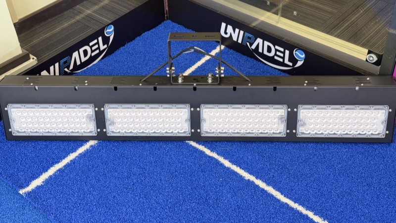 The padel court LED lighting system uses Mean Well power supply and high-end brand lamp beads, 200W power, luminous efficiency ≥120LM/W, luminous flux>24000Lm, color temperature 5700K, color rendering index Ra70, IP65 protection level, working temperature -25℃~+45℃, life ≥50000 hours, voltage AC220V, power factor ≥0.95.